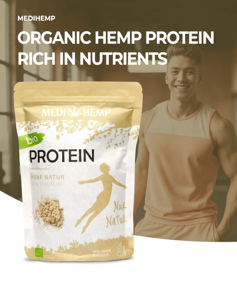 Proteina din cânepă conține toate cele 21 de aminoacizi, precum și acizi grași Omega 3 și 6 importanți pentru organism, alături de minerale. Produsul Medihemp, obținut din semințe de cânepă, este o excelentă sursă de proteine vegetale, prin care putem asigura organismului vitamine și fibre.