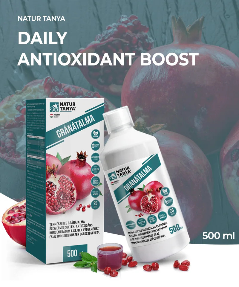 Compușii antioxidanți ai concentratului de rodie, împreună cu seleniul organic, ajută la neutralizarea radicalilor liberi, susținând astfel regenerarea celulelor și a țesuturilor.