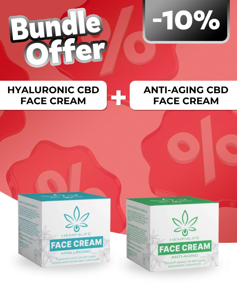 Hemp4Life Hyaluron CBD Arckrém és Öregedésgátló CBD arckrém egy kedvezményes csomagban
